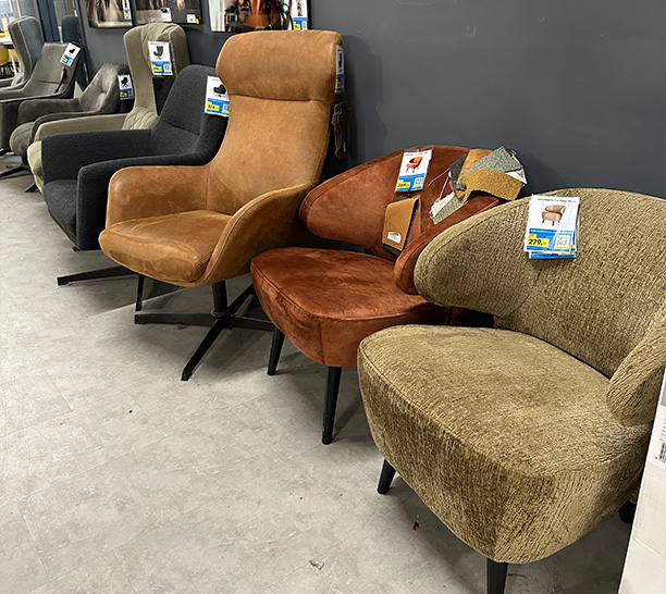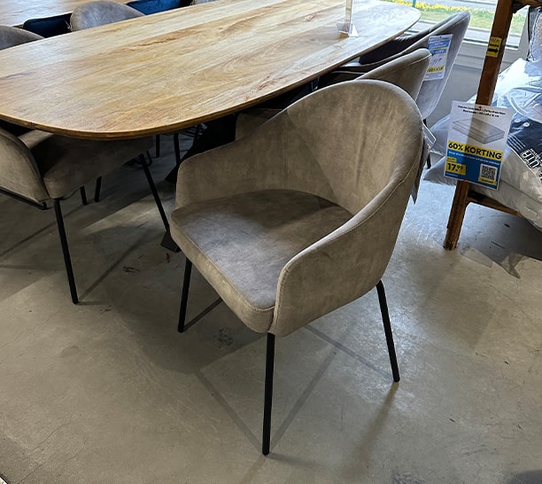 Bij Timco Voordeelmarkt krijg je nu tot 75% korting op een grote selectie eetkamerstoelen en fauteuils! Of je nu je eetkamer wilt vernieuwen of op zoek bent naar de perfecte fauteuil voor je woonkamer, wij hebben het voor je – nu voor een zeer scherpe prijs.