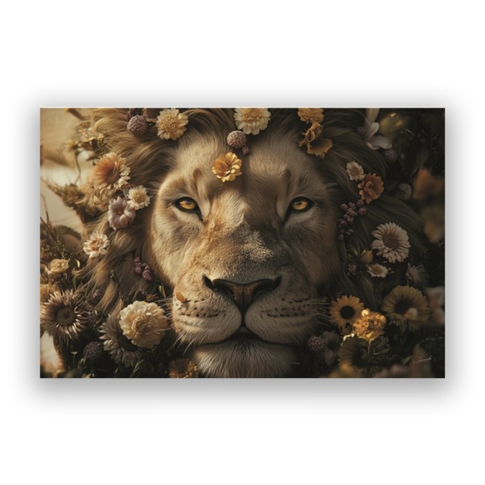 Glasschilderij – Leeuw Met Bloemen – 160 x 110 cm