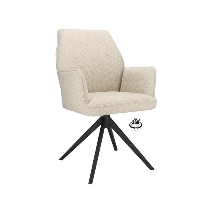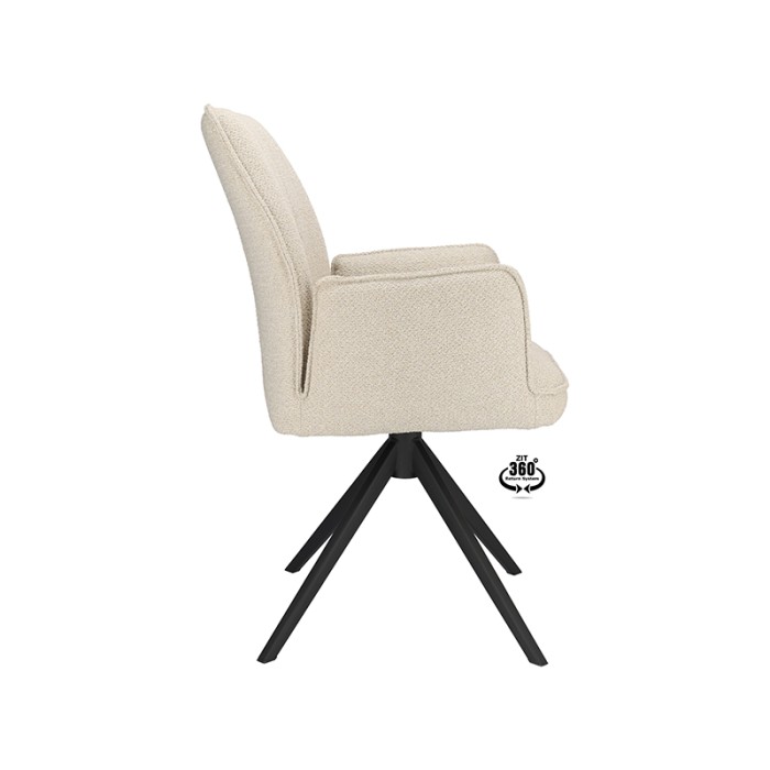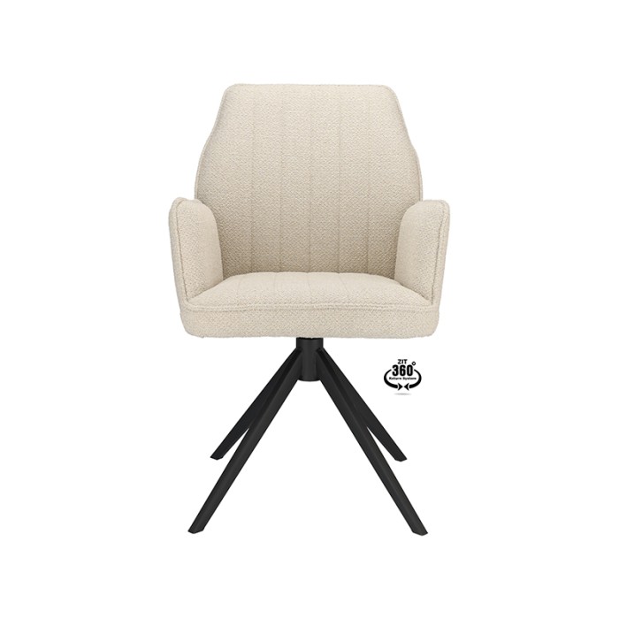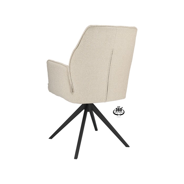 Dankzij de comfortabele armleuningen en de 360 graden draaibare zitting geniet je van optimale bewegingsvrijheid en gemak tijdens elk diner of gezellig samenzijn. De natuurlijke kleur past moeiteloos bij uiteenlopende woonstijlen – van Scandinavisch en modern tot industrieel of landelijk.
