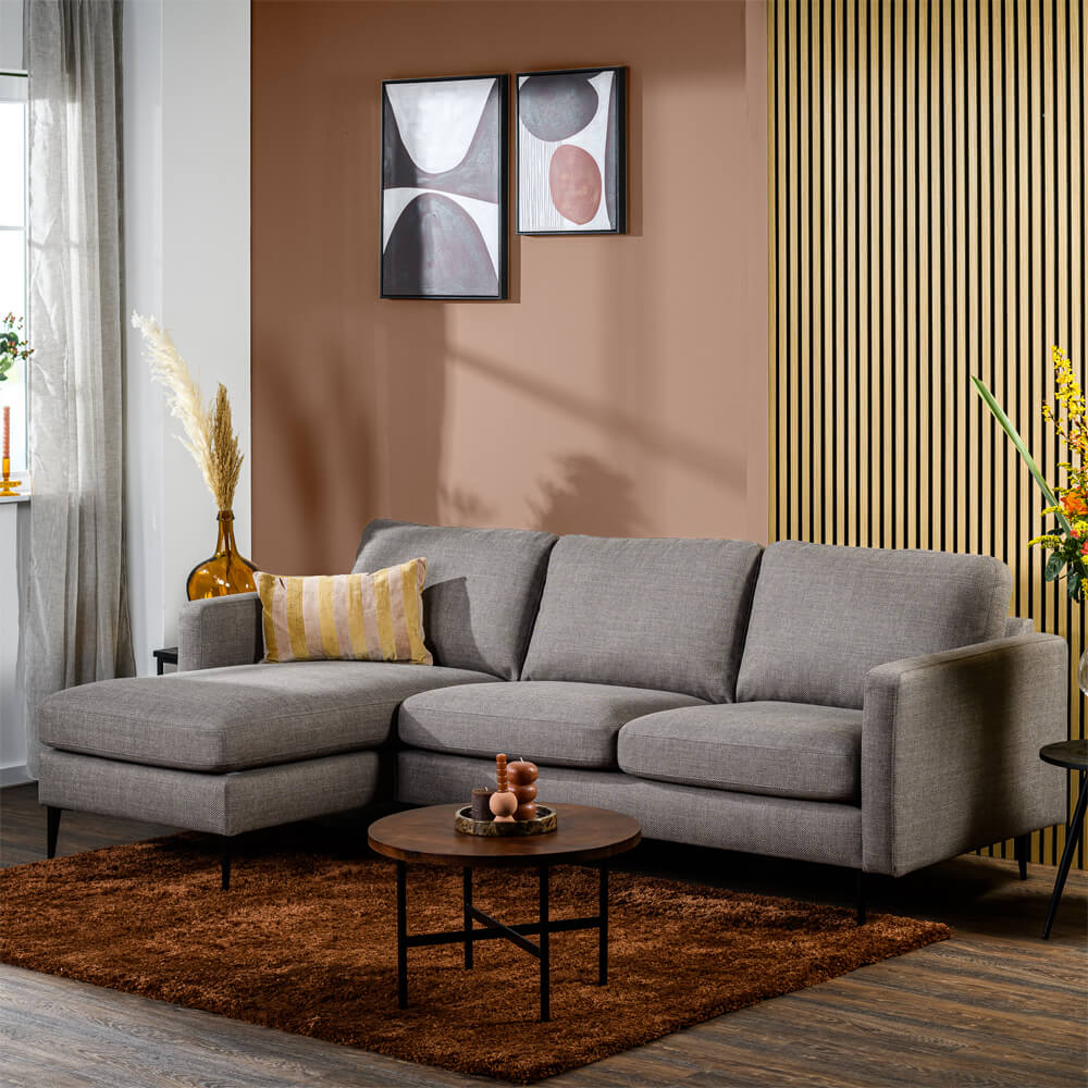 De Haluta Hoekbank Anne heeft een chaise longue die kan worden geplaatst aan de linker- of rechterkant, afhankelijk van uw voorkeur en de beschikbare ruimte in uw woonkamer. Dit zorgt voor een gezellige hoek waar u heerlijk kunt loungen of een boek kunt lezen.