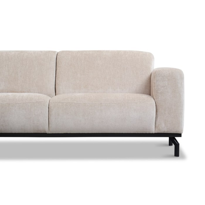 - Stijlvolle Afwerking: Schuine poten van donker hout geven de bank een strakke en tijdloze uitstraling.