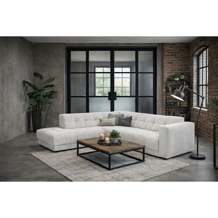 De Haluta Hoekbank Texel – beige links is een sfeervolle en comfortabele bank die comfort, functionaliteit en elegantie combineert, een echte eyecatcher voor jouw woonkamer.