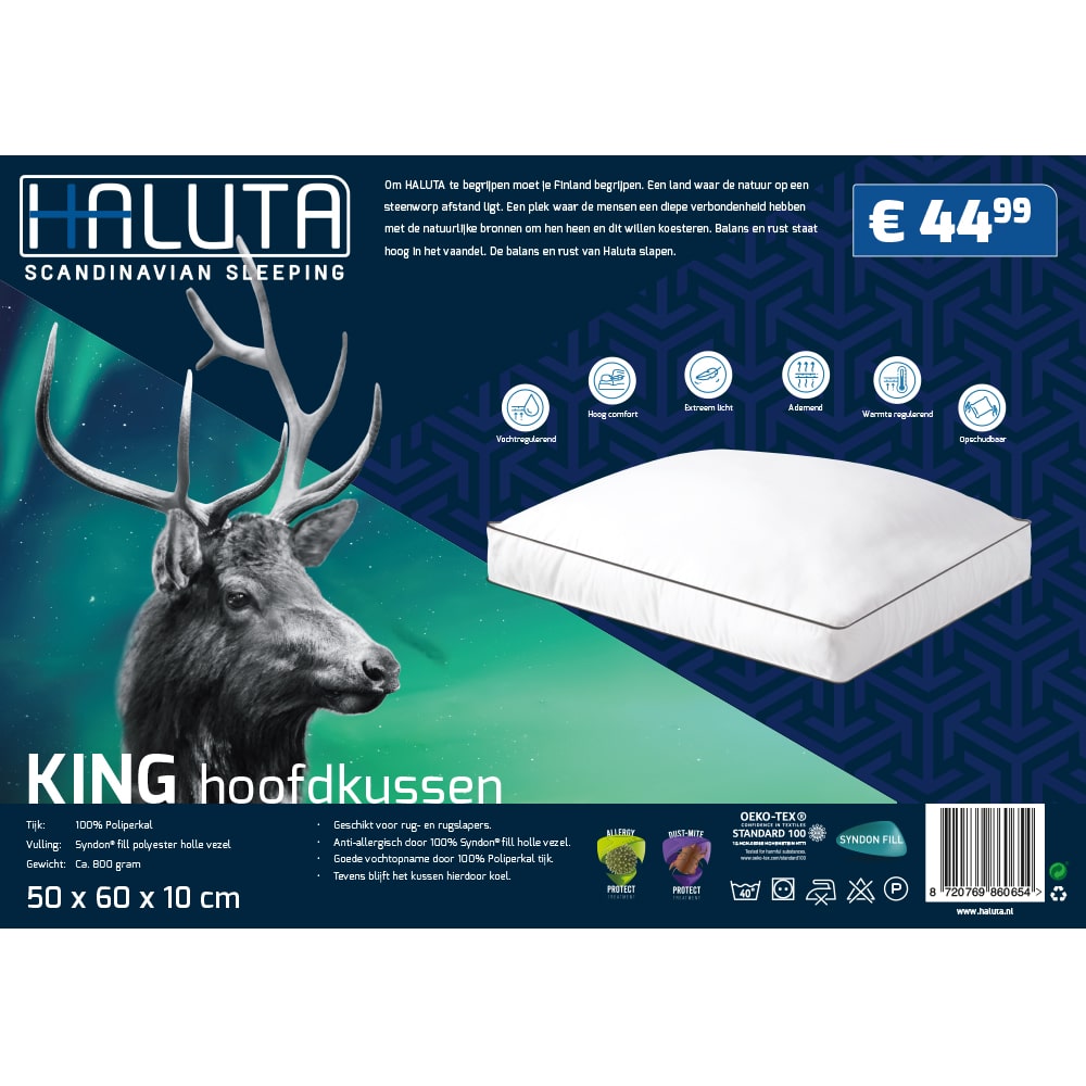 Haluta King – Poliperkal Box Hoofdkussen – 50 x 60 x 10 cm