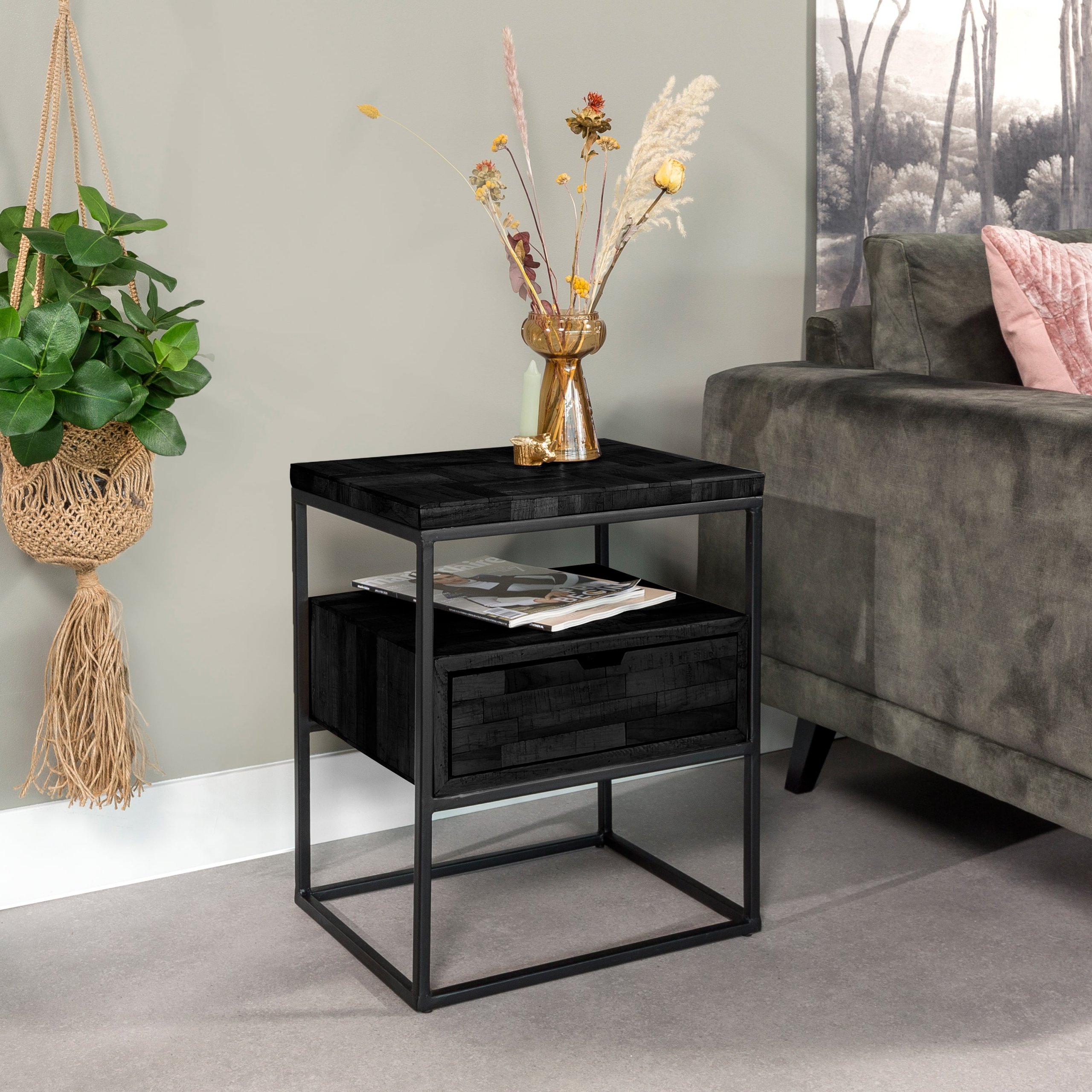 Haluta Nachtkastje – 45 x 35 x 55 cm – Grey Block – Zwart