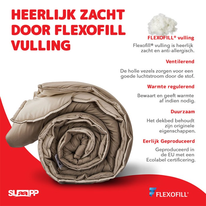 Het Slaapp wasbaar dekbed is geschikt voor elk seizoen en eenvoudig thuis te wassen. De neutrale beige tint past moeiteloos bij iedere slaapkamerstijl en zorgt voor een rustgevende uitstraling. Perfect voor dagelijks gebruik, voor mensen met allergieën of als extra dekbed voor logees.