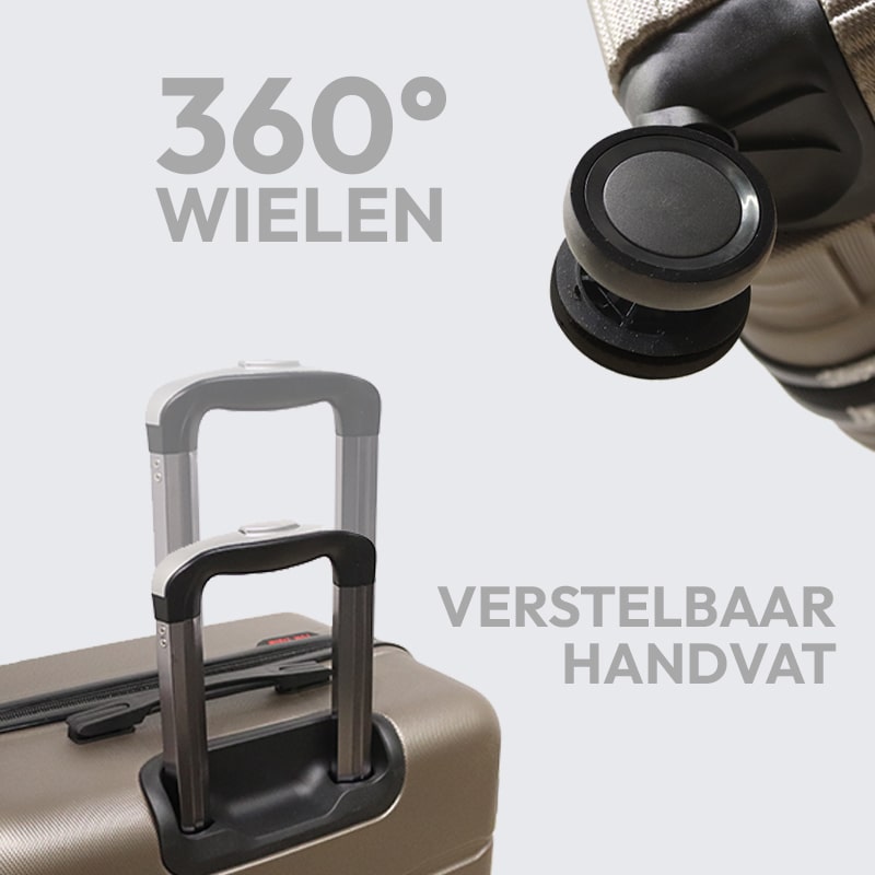 De koffers van TVR Travel zijn vervaardigd uit superieur materiaal, waarbij stevigheid hand in hand gaat met een lichtgewicht design. Deze duurzame koffers zijn gemaakt om de tand des tijds te doorstaan, waardoor u jarenlang kunt genieten van zorgeloze reizen.